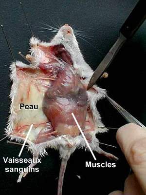 On décolle la peau, on la rabat vers l'extérieur et on la fixe avec des épingles.