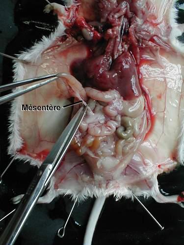 On déroule l'appareil digestif en sectionnant avec précaution les replis du mésentère.