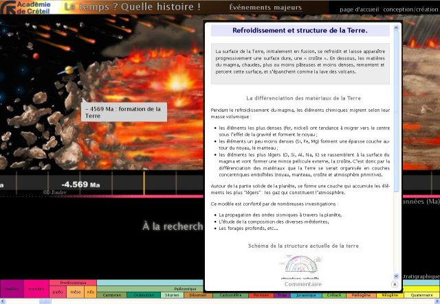 Cette fresque numérique est une déclinaison numérique d’un projet réalisé au collège Anatole France de Drancy (93) [2] et inspiré de : « l’Allée du temps », présentée au sein de l’exposition « Aux sources de la Terre » dans les jardins du MNHN en 2008.