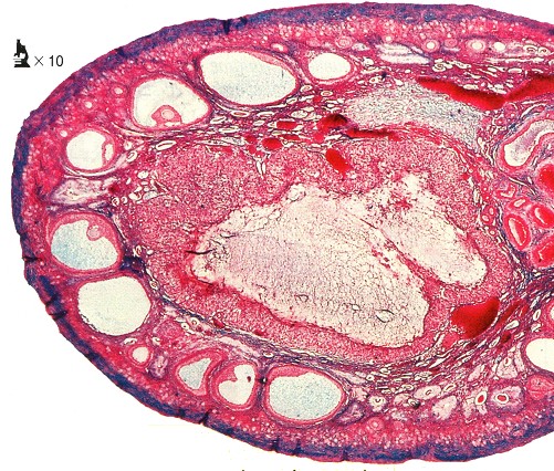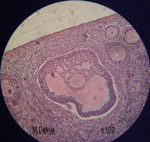 Coupe d'ovaire à faible grossissement De taille variable, on
