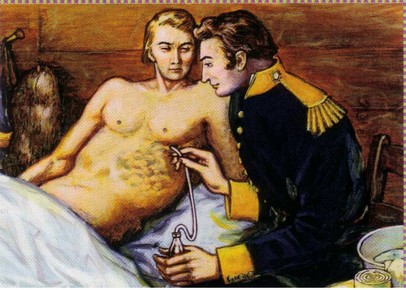 «J’en fis entrer dans un tube en verre ; je mis avec ce suc quelques brins de chair . Je le plaçai dans un fourneau où l’on éprouvait un peu près la chaleur de mon estomac ; j’y mis aussi un tube semblable avec une égale quantité de chair , mais je le remplis avec une quantité d’eau qui était la même que celle du suc gastrique pour me servir de terme de comparaison . Voici les événements que j’observai. La chair qui était dans le suc gastrique commença à de défaire avant 12 heures, et elle continua insensiblement jusqu’à ce que, au bout de 35 heures, elle ait perdu toute consistance . Il n’en fut pas de même dans le petit tube où j’avais mis de l’eau : la plus grande partie des fibres charnues plongées dans l’eau étaient encore entières au bout du 3ème jour » |