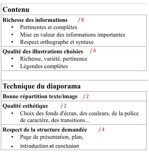 Notations : les critères importants _______________BAREME
